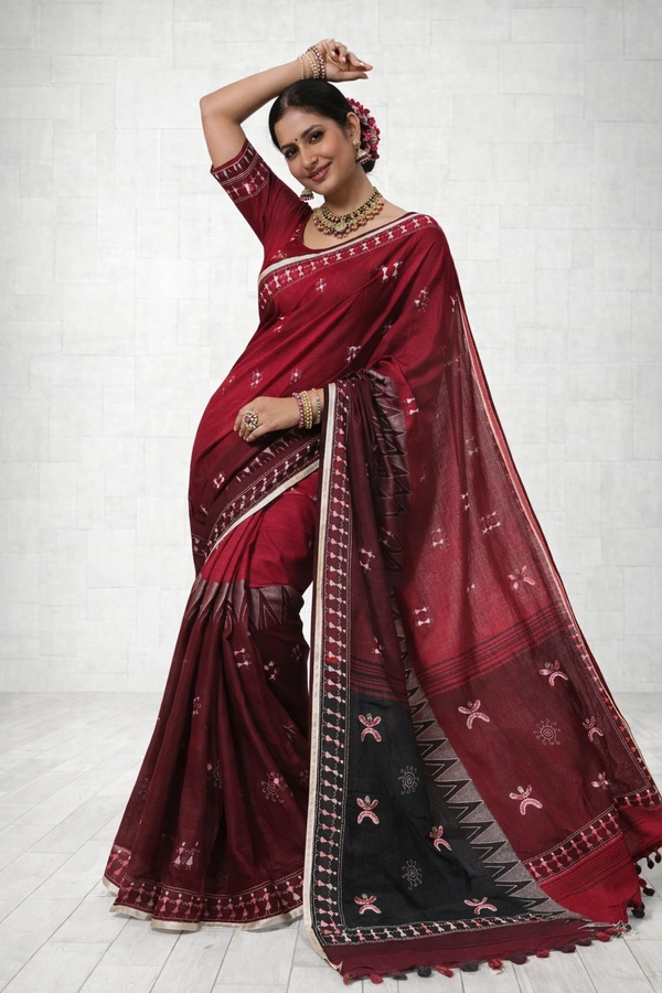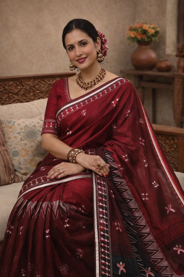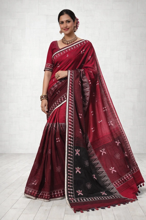 SKU1462 : Khadi Cotton Saree with Kantha stitch