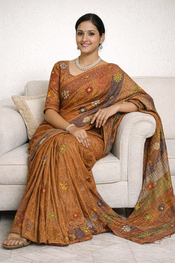 Experience the rustic elegance of Gicha Tussar fabric, beautifully enhanced with vibrant Lambani handwork. Known for its rich texture and natural appeal, Gicha Tussar offers a raw silk feel that reflects tradition and authenticity. The intricate Lambani embroidery adds a bold and artistic touch, making it perfect for sarees, ethnic wear, and festive outfits.