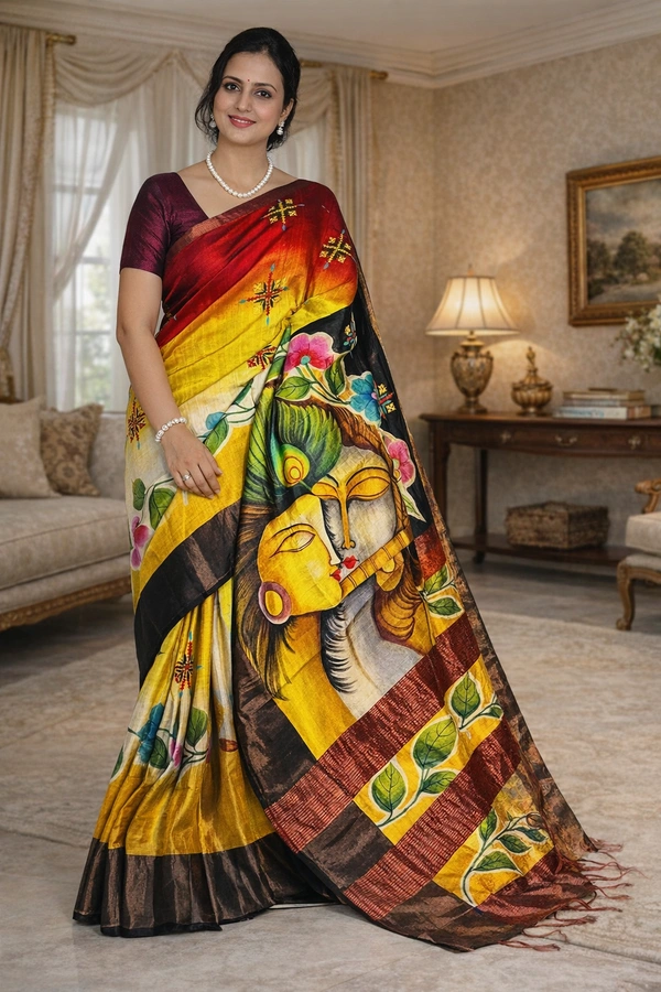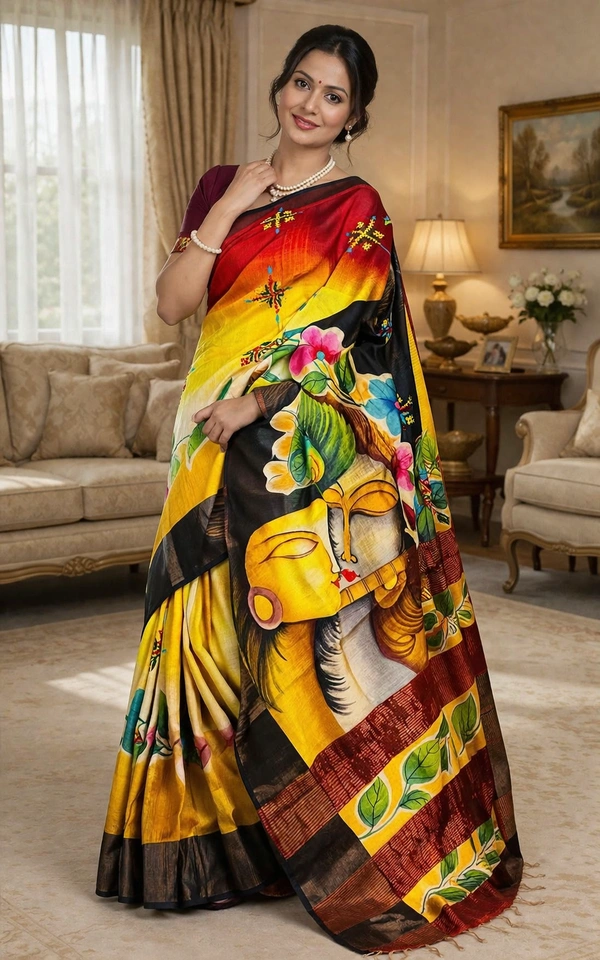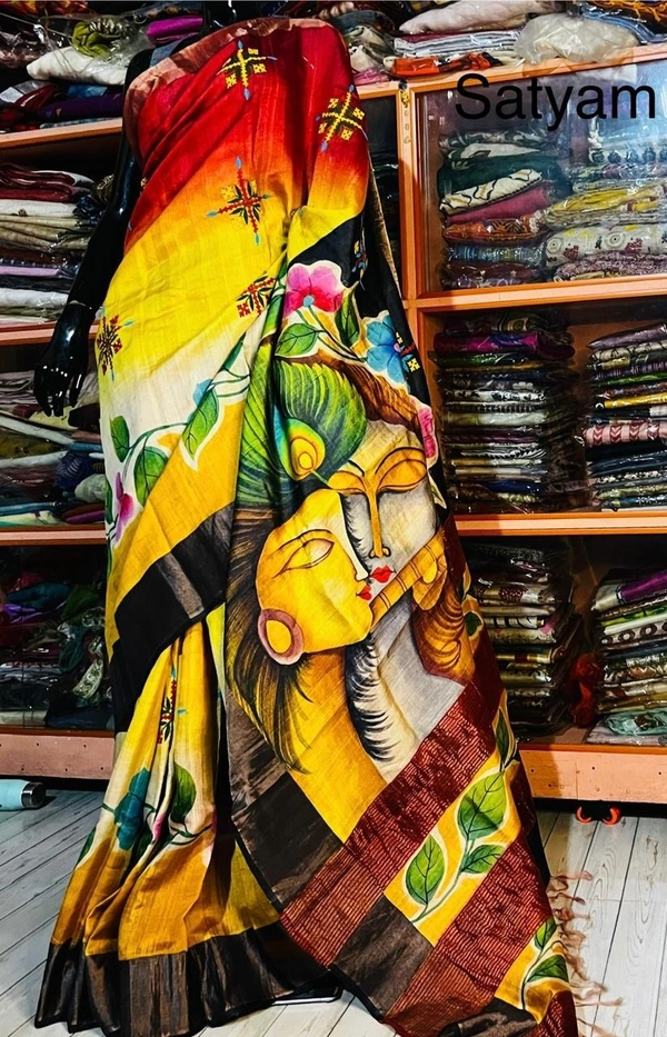 SKU1519 : Pure Tussar Silk Saree with Gujrati Work - Acid Painting