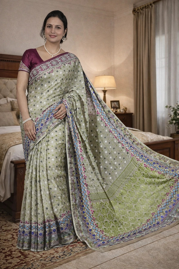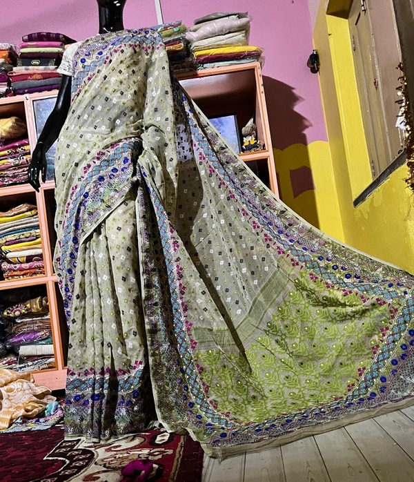 SKU1534 : Jamdani Saree with Lambani Handwork